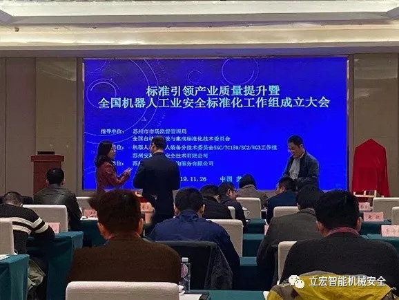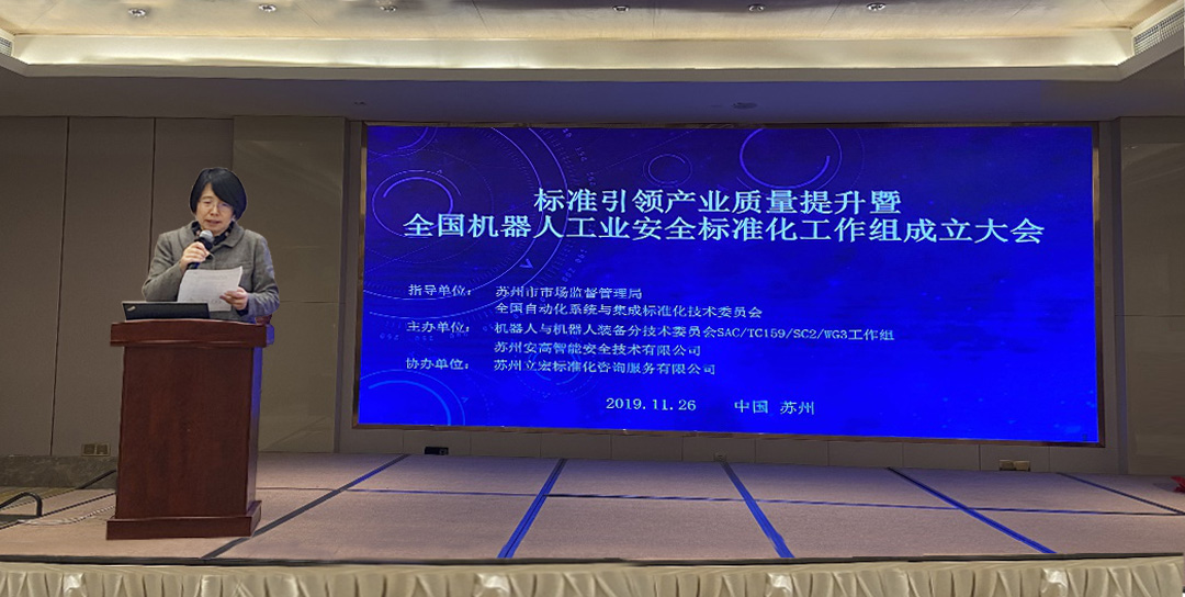 會議主題標準引領產業質量提升暨全國機器人工業安全標準化工作組成立大會,大會由蘇州市市場監督管理局標準管理處副處長楊晶晶主持。蘇州安高智能科技有限公司作為工作組組長單位